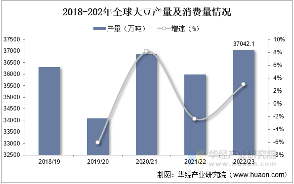 跟着全球大豆种植面积以及种植手艺的提拔,近年来全球大豆产量全体呈增加的态势。据材料显示,2022/23年度全球大豆产量为37042。1万吨,同比增加2。9%。此中产量排名前三的国度别离为巴西、美国和阿根廷,而我国做为全球大豆消费大国,产量占比仅为5。5%摆布,排名第四。