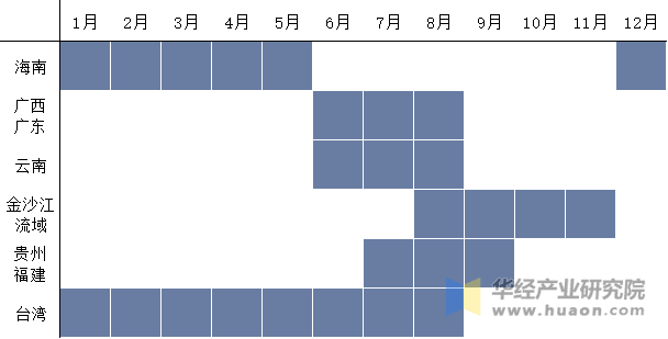 中国芒果产区次要分布正在云南、广西、海南、四川、、贵州等地,此中,云南、广西、海南以及四川产区的芒果园面积较着跨越其他产区。2021年云南、广西、海南以及四川产区芒果园面积别离为175。2万亩、158。4万亩、99。3万亩、80。7万亩,正在全国芒果园面积中所占的比沉顺次为29。87%、27。01%、16。93%、13。76%。海南芒果次要正在1-5月和12月上市,广西、广东、云南芒果次要正在6-8月上市,四川芒果正在8-11月上市,贵州、福建芒果次要正在7-9月,芒果次要正在1-8月上市。