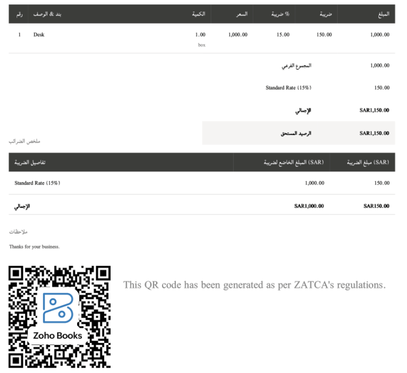 Zoho Books能够取供应链中的其他环节(如采购、物流)集成,实现财政消息的共享和协同工做,提高供应链的全体效率。通过集成式办理,企业可以或许更好地掌控整个供应链的财政情况。Zoho Books取Zoho CRM等系统无缝对接,整合客户消息、买卖汗青等财政消息,帮帮企业更好地领会客户需求,供给个性化的办事。这种集成有帮于提拔客户对劲度和忠实度。Zoho Books支撑处置分歧国度和地域的税收轨制,包罗报税表格、演讲和满脚各地税务要求的功能。这对于确保企业正在国际营业中的税务合规性至关主要。Zoho Books已被英国税务海关列为合适Making Tax Digital(MTD)兼容软件的申报。同时,Zoho Books仍是阿联酋 (FTA) 、沙特阿拉伯 (ZATCA)承认的合规处理方案。例如下图,产物至此生成合适沙特律例的电子。
